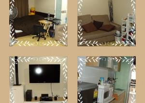 3) ชั้น 14 Tower 2 ห้องสตูดิโอ 38.65 ตรม. วิวสะพานแขวน ทิศใต้รับลมดี ห้องมีประตูบานเฟื้ยมกั้นเป็นสัดส่วนระหว่างห้องนอน และห้องรับแขก พร้อมเคาน์เตอร์ครัวบิลอินท์แบบสแตนดาร์คโครงการ ห้องนี้มุมและวิวเดียวกับชั้น 7