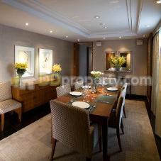 It is a 139 square meter condo converted into a 2 bedroom, 2 bath apartment (with separate maid's room). It was designed by a leading Hong Kong designers and it is fully furnished -- photos of the apartment can be sent to you (email: kaydew@gmail.com). It is a very nice unit -- all new bathrooms, black granite floors, Lutron dimming systems throughout, and it would be suitable for entertaining -- the dining rooms easily seats 8, sometimes 10 and I think it would be good for an embassy couple.