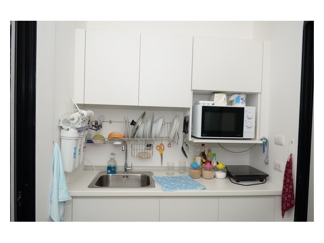 เตียง ตู้เสื้อผ้า โต๊ะเครื่องแป้ง ผ้าม่าน 2 ชั้น โซฟา ทีวี ตู้เย็น ไมโครเวฟ โต๊ะทานอาหาร เครื่องทำน้ำอุ่น เครื่องกรองน้ำ