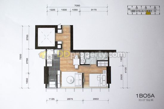 ห้องอยู่ชั้น 5 ขนาด 1 ห้องนอน 33.07 ตร.ม