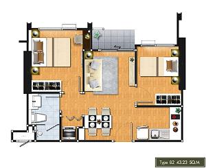 ขนาดห้อง 43.0 ตารางเมตร