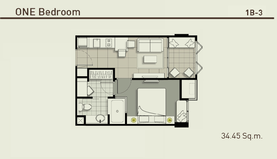 คอนโด Ideo Ladprao 17 1 ห้องนอน ให้เช่า ห้องขนาด 33.7 ตรม. แบบ 1 ห้องนอน 1 ห้องน้ำ