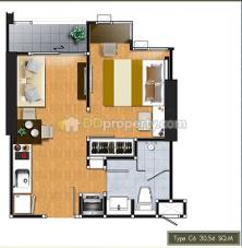 1 ห้องนอน ขนาด 30.54 ตร.ม. แบบห้อง C6