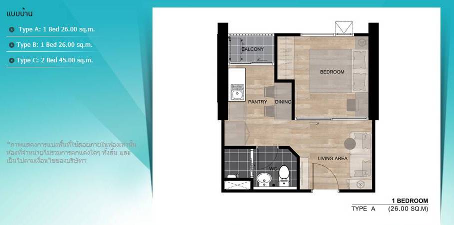 ขนาดพื้นที่ 26.0 ตารางเมตร