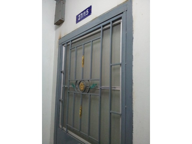 ห้องเลขที่ 27/15 อยู่ชั้น 2 ขนาดของห้อง 33 ตารางเมตร ภายในประกอบด้วย ห้องนอน 1 ห้อง และห้องนั่งเล่น 1 ห้อง ห้องติดเหล็กดัด (อย่างหนา) มุ้งลวด และหน้าต่างระเบียงเป็นกระจก ระเบียงปูกระเบื้อง เป็นห้องริมใกล้บันไดขึ้นลง กำแพงห้องไม่ติดกับห้องอื่น ภายในห้องมีเฟอร์นิเจอร์ดังนี้