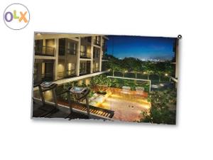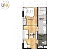 ห้องนั่งเล่น + ห้องนอน + ห้องน้ำ + ห้องครัว + พร้อมฉากกั้น ห้องนอน ห้องครัว และระเบียง