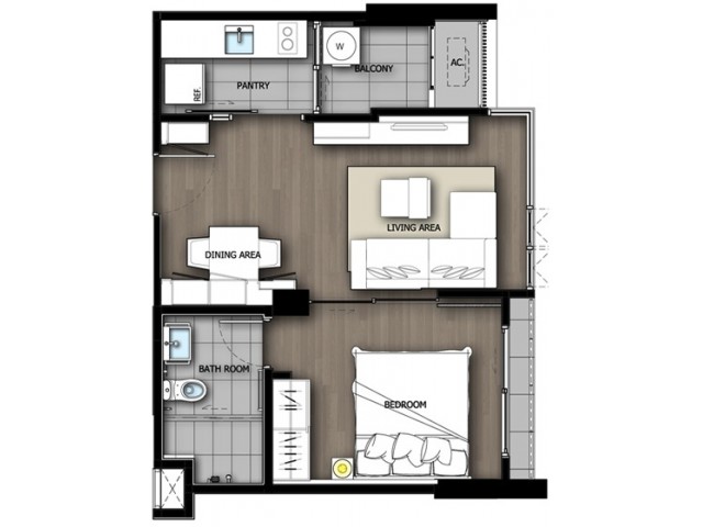 ขาย The Room สุขุมวิท 40 แบบ 1 Bed Room ขนาด 42 ตรม. ชั้น 7 ทิศใต้ ห้อง Single Corridor