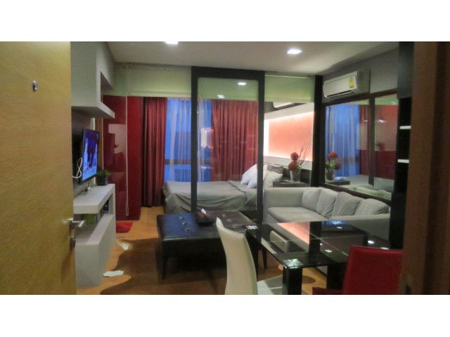 On the last floor of the building (8 th floor), fully furnished 37 sqm condo to rent with built-in furnitures and modern equipments.