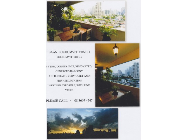 2 bed/2 bath condo @ Baan Sukhumvit (Soi 36) คอนโด ขาย - คอนโด ขาย
