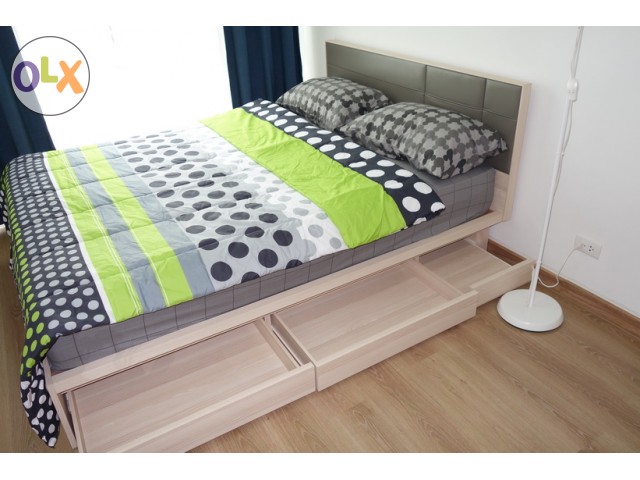 - เตียง 5 ฟุต (Set SB Forniture) ด้านล่างเตียงมีลิ้นชักใส่ของ 3 ช่อง ฟูกพร้อมชุดผ้าปู+ผ้านวม หมอน 2 ใบ