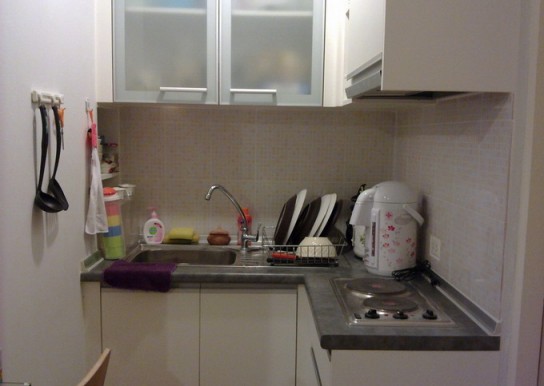 7. ชุดครัว Build-in พร้อมชั้นวางของ (ซิ้งค์, เตาไฟฟ้า 2 หัว พร้อมที่ดูดควัน ของ EVE)