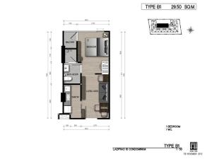 ขายดาวน์ The Unique 10 ชั้น 2 type B1 ห้อง 29.5 ตร.ม.