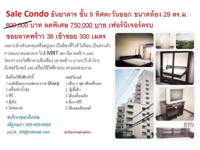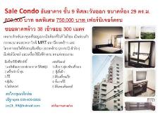 Sale Condo ธันยาคาร ชั้น 9 ทิศตะวันออก ขนาดห้อง 29 ตร.ม.
