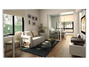ห้องนั่งเล่น + ห้องนอน + ห้องน้ำ + ห้องครัว + พร้อมฉากกั้น ห้องนอน ห้องครัว และระเบียง