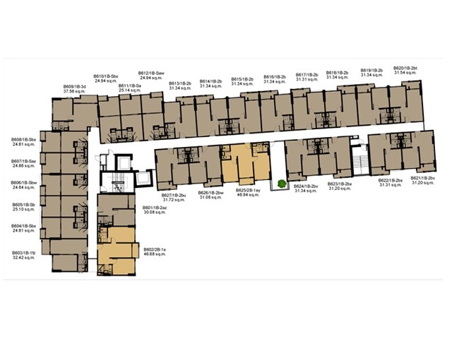 ห้องชั้น 6 อาคาร B (B608) ขนาด 24.81 ตรม.