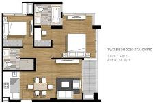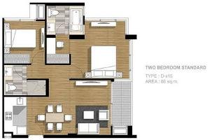 Size 66 sq.m., 2 bedrooms, 2 bathrooms, 3rd floor (Low rise building 8 floors) facing North and East view (front of building).