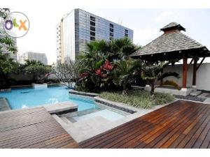 We offer a luxury living spacious fully furnished 2 bedroom 2 bathroom unit on the 9th floor , 120 S.qm. of living space, high ceiling, 42 inches plasma TV for living area and 32 inches LCD TV for master bedroom and 2nd bed room.Custom built kitchen cabinets, washer and dryer machine, Refrigerator, oven, hood and microwave .Concealed air-con for all area . Master bathroom with Jacuzzi bathtub. Rain shower for both master and 2nd bathroom