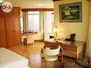 The large unit come with big balcony and pool view. The unit is fully furnished which is unique and homey decorated. The condo features swimming pool and fitness and security guard 24hours.