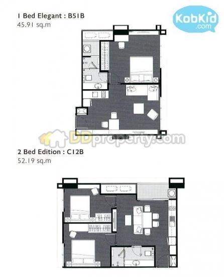 ห้อง 1 Bed Elegant ขนาด 46 ตร.ม. ชั้น 7 ฝั่งตะวันตก ( คนละฝั่งกับรถไฟฟ้า BTS ) วิวสวย มีความเป็นส่วนตัว