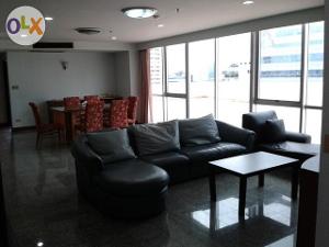 4-bedroom condo with large terrace for rent. Asoke Place Condominium: 4 bedrooms, 2 restrooms [(166.84 sq.m + 180 sq.m. terrace (6-m wide x 18-m long)]. 300 m from Asoke-Sukhumvit intersection, near Sino-Thai Tower, with kitchen equipped with cooker hood, electric range, refrigerator, washing machine, LCD TV, A/C in all rooms, built-in and loose furniture. This room is on 29th floor with great view. Fitness, recreational room and swimming pool available. 1-car parking privilege. Only for Baht 65,000 per month. Minimum 12-month contract. 2-month rental deposit and 1-month rental in advance. Contact Khun Toey at 089 883 0298 or anusartw@gmail.com.