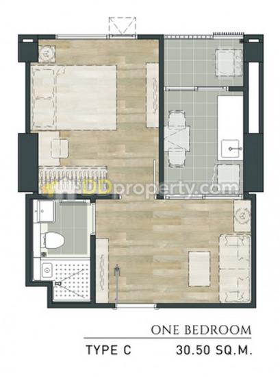 พื้นที่ใช้สอย 30ตร.ม. มี 1 ห้องนอน, 1 ห้องน้ำ, ห้องครัวแยกและห้องนั่งเล่น อยู่ชั้น 8 หัวเตียงหันขึ้นทิศเหนือและได้แดดตอนเช้า