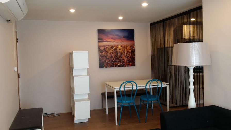 Bangkok Condo for rent brand new 10th floor corner suite version. Total area of 60 sq.m., 2 bedrooms, 1 bathroom, 1 living room and modern kitchen, electric stove, buried. And hood sucking it out of a first floor condo with only four rooms, airy room, very quiet. Very windy day A new Decorating New paint and a bathroom