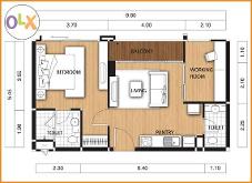 1bedroom,1study room, 2bathrooms. (54 sqm.)