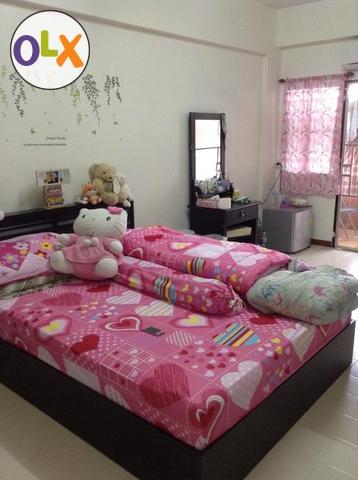คอนโดให้เช่าพร้อมเฟอร์ เตียงพร้อมที่นอน ตู้ โต๊ะเครื่องแป้ง ชั้นวางทีวี แอร์ (ของใหม่ใช้มาไม่ถึง 6 เดือน) พัดลมเพดาน มุ้งลวด เหล็กดัดประตูหน้า หิ้วกระเป๋าเข้าอยู่ได้เลย