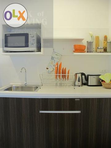 ภายในห้องวัสดุเกรด A, ตกแต่งเฟอร์นิเจอร์ครบ + ห้องนั่งเล่น + ห้องนอน + ห้องน้ำ + ห้องครัว + พร้อมฉากกั้น ห้องนอน ห้องครัว และระเบียง