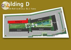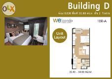 Building D - D-208 ห้องขนาด 32.80ตรม. แบบห้อง 1 ห้องนอน 1 ห้องน้ำ (1BR-A)