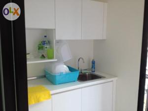 ตู้เย็นเครื่องทำน้ำอุ่นพร้อมตู้เสื้อผ้าเตียงมีห้องรับแขกโซฟาห้องเตรียมอาหารมีตู้แขวนพร้อมซิ้งล้าง