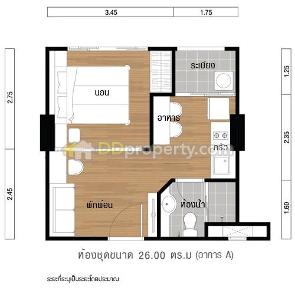 พื้นที่ 26 ตารางเมตร (พร้อมสำหรับการตกแต่งใหม่)