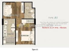1ห้องนอน 1ห้องน้ำ 1ห้องนั่งเล่น 1ห้องครัว และระเบียงตากผ้า ทุกห้องมีประตู แยกเป็นสัดส่วน