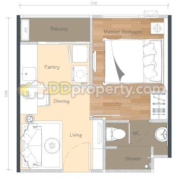 ห้อง Type A 1 ห้องนอน ขนาด 26.25 ตร.ม.