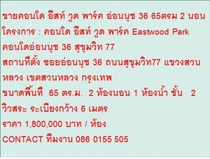ขายคอนโด อีสท์ วูด พาร์ค อ่อนนุช 36 65ตรม 2 นอน