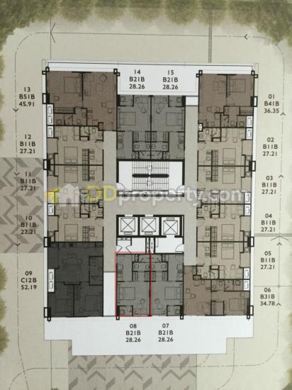 -หน้าคอนโดติดทางขึ้นรถไฟฟ้าสะพานควาย ห้องขนาด 28.26 ตร.ม. รหัสห้องชุด A012A08