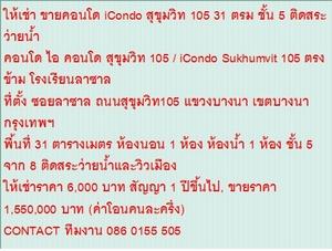 ขายคอนโดโครงการ ไอ คอนโด สุขุมวิท 107 - 1450000 บาท ติดต่อคุณ ravisara ravisara