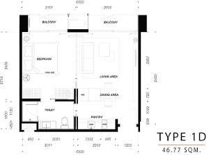 ขนาดห้อง 47.0 ตารางเมตร