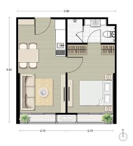 ขายดาวน์ โนเบิล รีโคล BTS อโศก, MRT สุขุมวิท 1 ห้องนอน 1 ห้องน้ำ 34. 53 ตรม. ชั้น 6