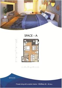 - Type Space 1 bed room 1 bathroom ( 38 sq.m. - 40 sq.m. ) Start from 2.6 Million Baht