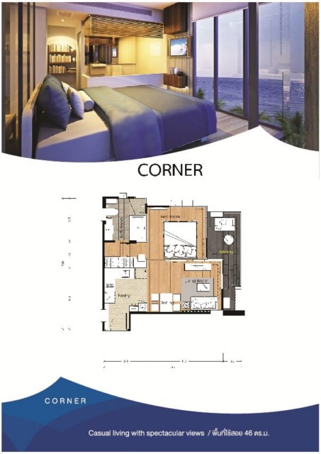 - Type Corner 1 bed room 1 bathroom ( 46 sq.m. ) Start from 3.5 Million Baht