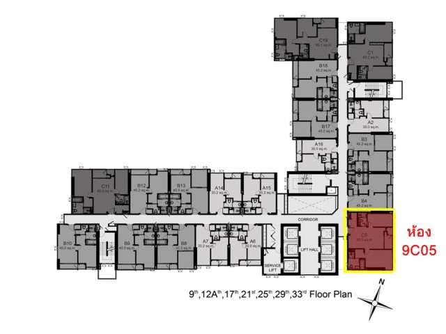 ห้อง 9C05 ตำแหน่งห้องยอดนิยม ชั้น 9 เลขสวยเป็นมงคล