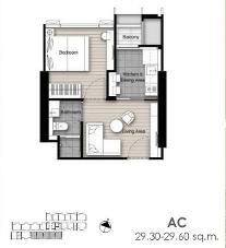 ให้เช่า คอนโด Whizdom Connect Sukhumvit 1 ห้องนอน ขนาด 27 ตารางเมตร ชั้น 6