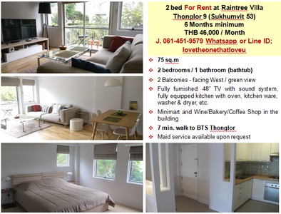 Rent Raintree Villa 2 bedroom 75 sqm 4 fl BTS Thonglor [code R- K0521]