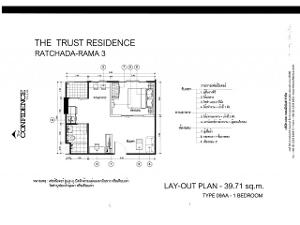 ขายดาวน์ The Trust รัชดา-พระราม3 ห้องใหญ่ 39.71 ตรม