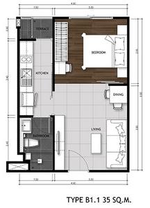 - เป็นห้องชุดขนาด 35 ตารางเมตร ดีไซน์ห้องลงตัว ครัวปิด แยกหนึ่งห้องนอน เข้าห้องน้ำไม่ต้องเดินผ่านห้องนอนแบบคอนโดทั่วๆไป