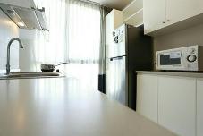 ห้องครัวปิด เฟอร์นิเจอร์ครบ บิลท์อิน เครื่องปรับอากาศ เครื่องใช้ไฟฟ้า