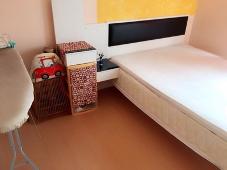 - เตียงนอน 5 ฟุต พร้อมฟูก, หมอน 2 ใบ ตู้เสื้อผ้า แบบ Built-in และม่านห้องนอน