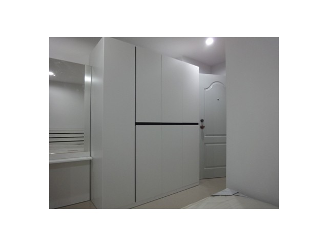 - เฟอร์นิเจอร์สีขาว ตู้เสื้อผ้าขนาดใหญ่ 4 บานเปิด เตียงนอนพร้อมที่นอนขนาด 6 ฟุต, โต๊ะเครื่องแป้ง, ที่วางทีวี, ผ้าม่าน, มูลี่กันแดดห้องครัว
