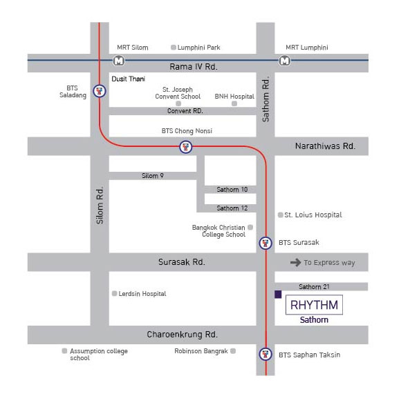 For rent Rhythm Sathorn near to Sathorn Road. and BTS Taksin. Plenty of local that food just around the corner.